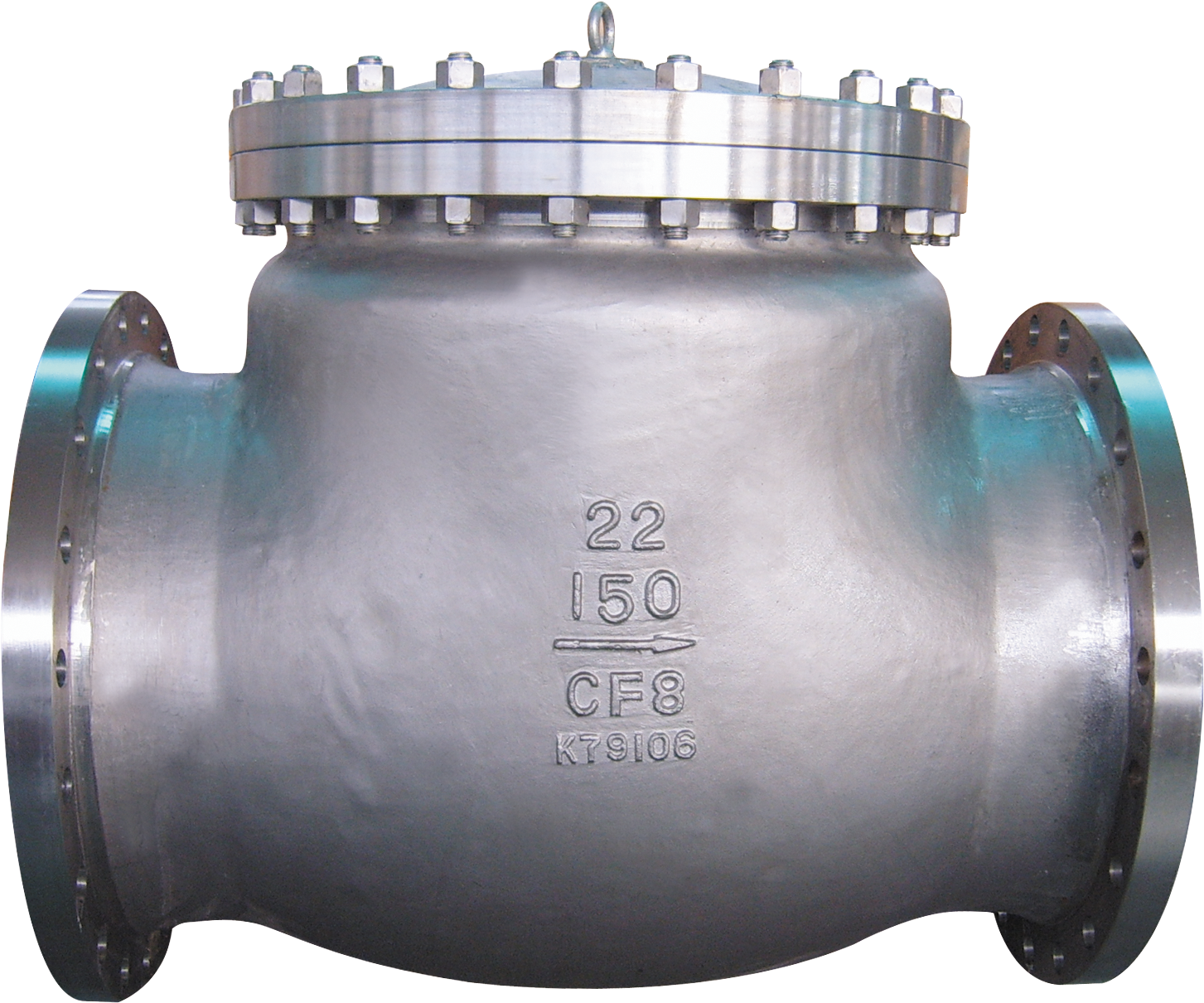 此种阀门是通过阀板围绕着阀座上面的一个枢轴转动来控制阀门的打开和关闭。这是一种自动式阀门,是通过管道内的介质自行流动产生的推力来开启关闭阀门。此种阀门的主要功能是阻止管道内介质的倒流。